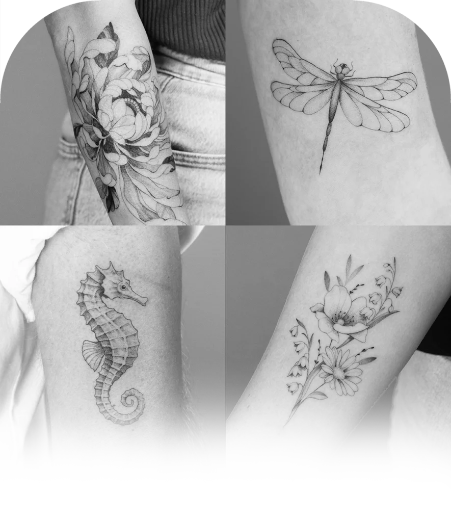 Fine line tattoos zijn subtiele tattoos met strakke, nauwkeurige lijnen en veel aandacht voor detail. Ik werk met een fijne naald combinatie, waardoor het resultaat stijlvol en sierlijk oogt.
