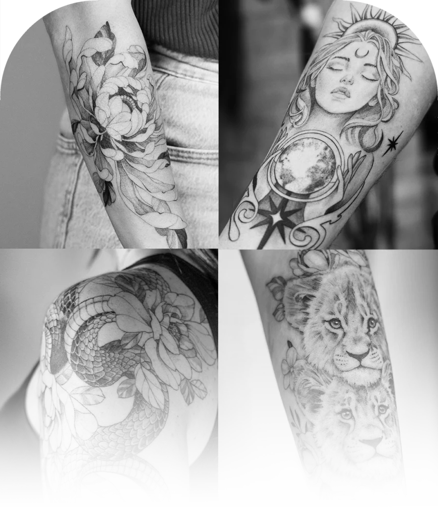 - Het zetten van de tattoo. Met precisie en zorg wordt de tattoo gezet, volledig afgestemd op jouw lichaam.